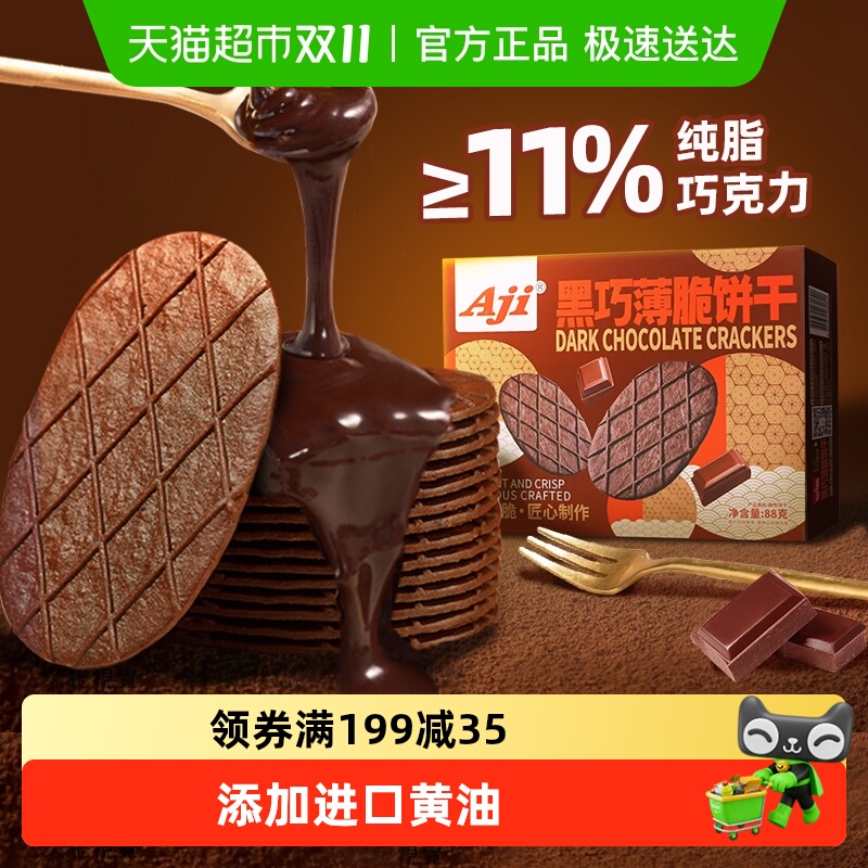 零食/坚果/特产 Aji黑巧薄脆饼干巧克力华夫脆纯可可脂黄油早代餐儿童年夹心零食