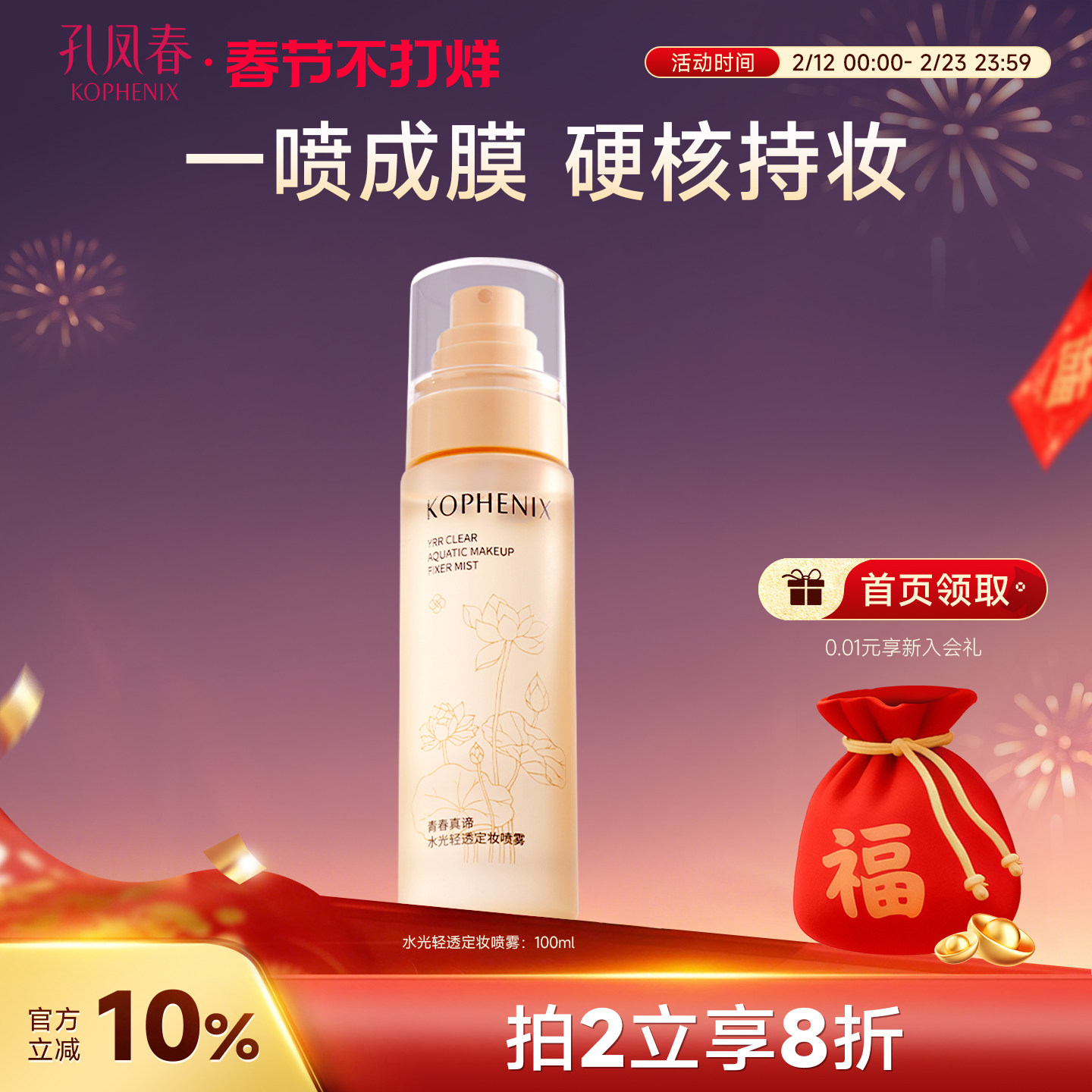 彩妆/香水/美妆工具 孔凤春定妆喷雾补水保湿定妆持妆便携快速定妆官方旗舰店正品男女