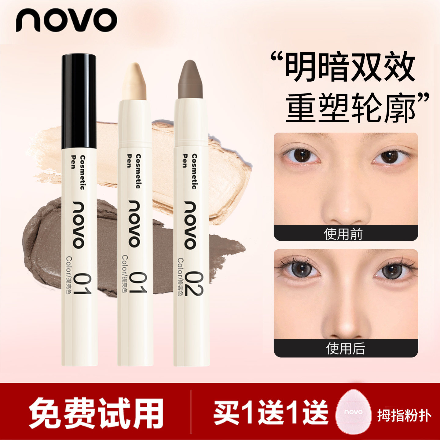彩妆/香水/美妆工具 NOVO修容棒脸部高光提亮阴影笔高鼻梁瘦脸自然立体防水新手学生党