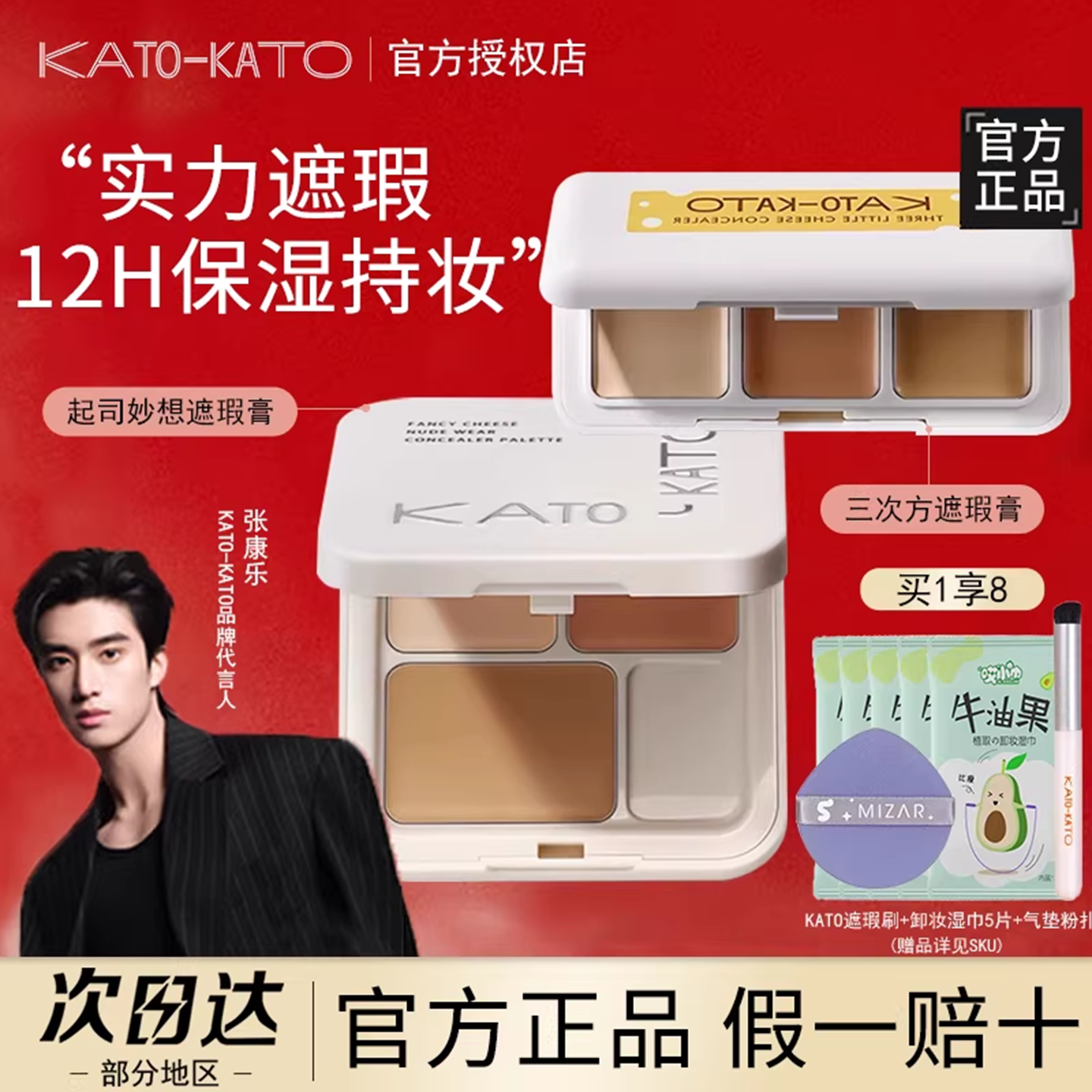 彩妆/香水/美妆工具 KATO-KATO遮瑕膏三色遮瑕盘痘印黑眼圈干油皮脸部笔KATO官方正品