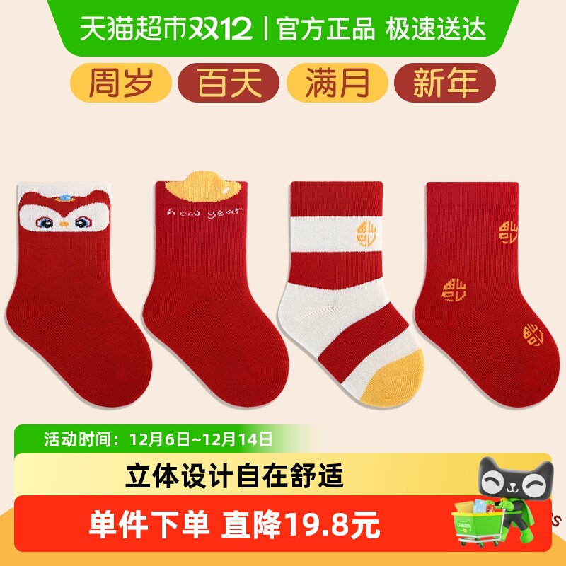 童装/婴儿装/亲子装 拉夏莉亚新年袜宝宝红色袜子儿童棉袜周岁满月白天过年婴儿春秋冬