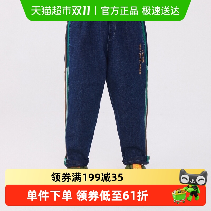 童装/婴儿装/亲子装 【商场同款】马拉丁童装儿童裤子新款男童大童侧边条牛仔长裤