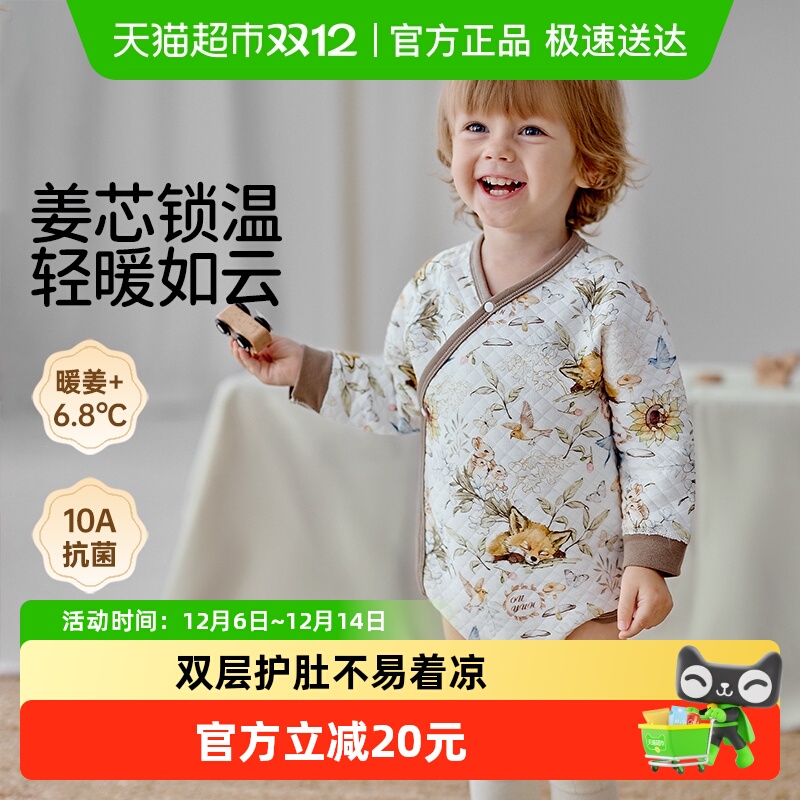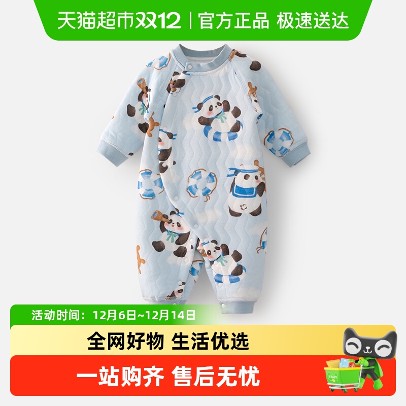 童装/婴儿装/亲子装 婴蓓依婴儿连体衣男宝女宝宝衣服三层保暖夹棉哈衣百天满月爬服