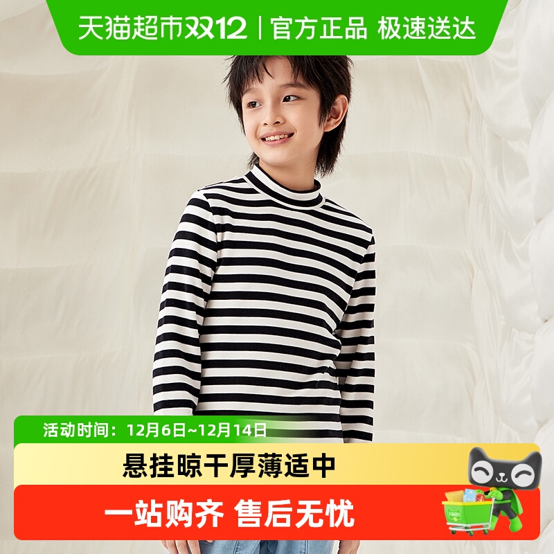 童装/婴儿装/亲子装 MOMOCO/玛米玛卡男童条纹打底衫2025冬季新款中大童洋气德绒保暖