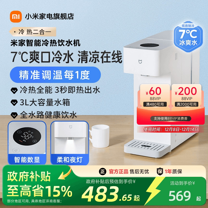 厨房电器 【政府补贴15%】米家智能冷热饮水机家用小型即热饮水机直饮机