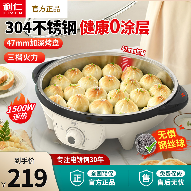 厨房电器 利仁电煎锅不锈钢电饼铛家用新款加深加大多功能烙饼专用锅煎饼机