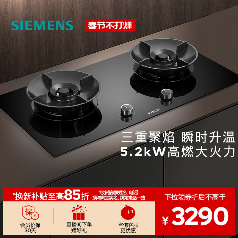 大家电 西门子嵌入式燃气灶具5.2聚焰猛火厨房家用双灶玻璃天然气95A3MB