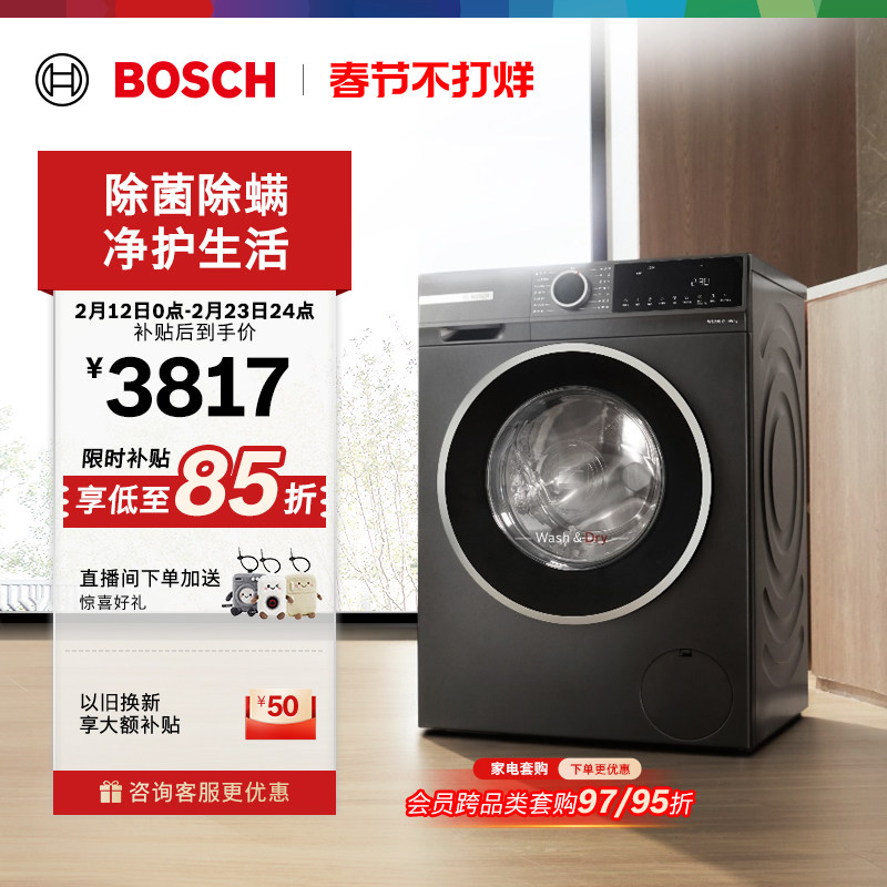 大家电 【以旧换新】博世4系爆款10公斤全自动家用洗烘一体滚筒洗衣机