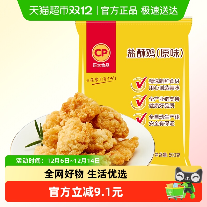 水产肉类/新鲜蔬果/熟食 CP正大500g盐酥鸡空气炸锅美食鸡米花小食冷冻半成品美食炸货小吃