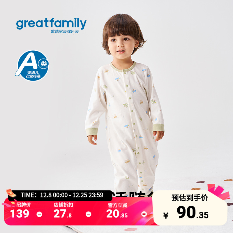 童装/婴儿装/亲子装 歌瑞家男童连身衣2025秋新款休闲可爱印花全棉微弹对襟连体哈衣