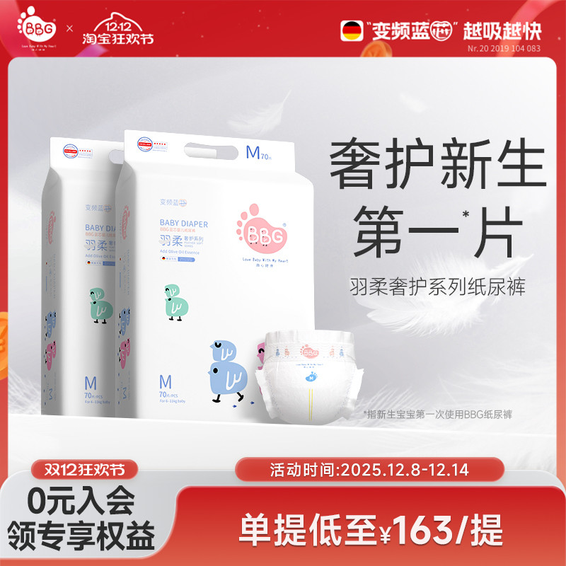 婴童尿裤 【2提】BBG变频蓝芯纸尿裤新生儿NBSMLXL羽柔奢护尿不湿超薄透气