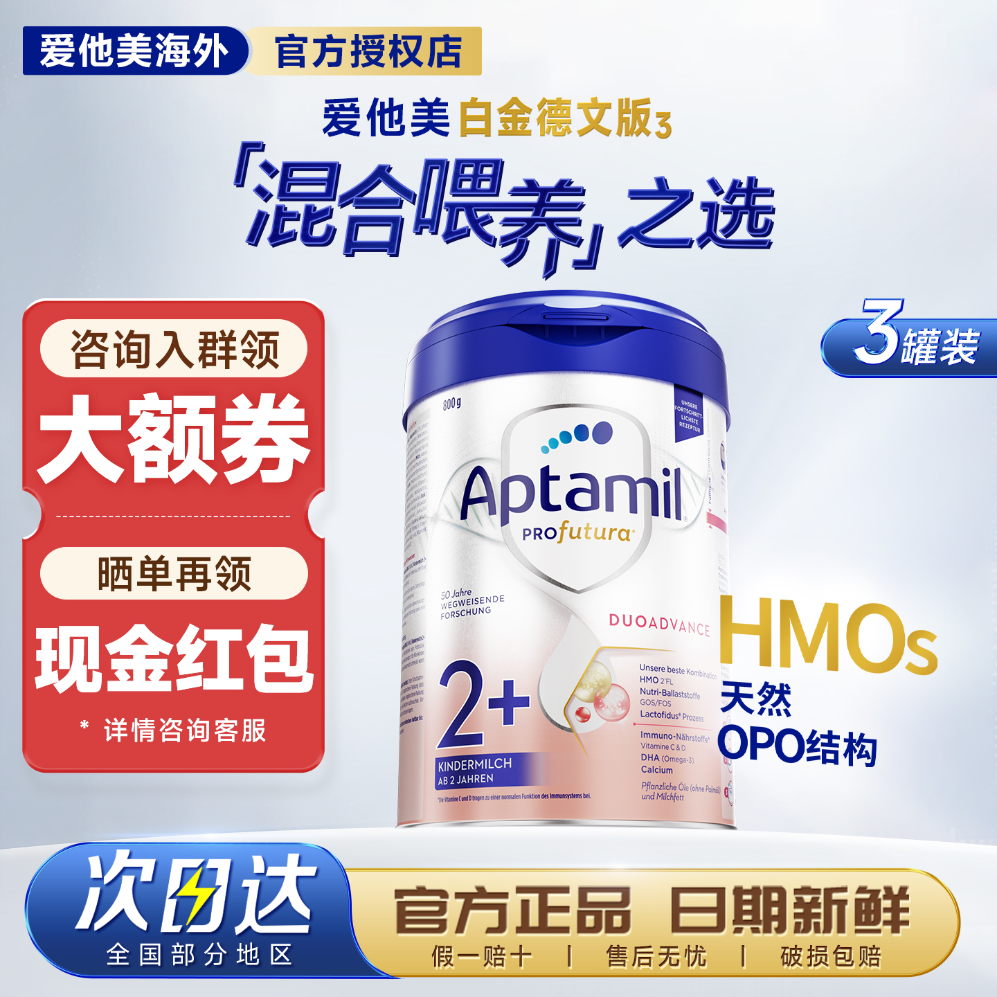 婴童奶粉 爱他美德国白金版2+段德文升级版HMO婴儿配方奶粉24-36个月*3罐装