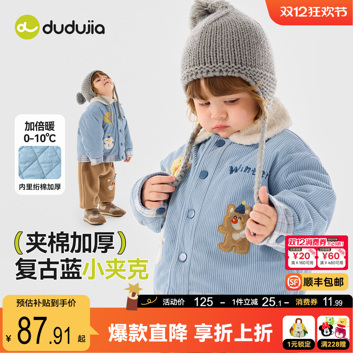 童装/婴儿装/亲子装 嘟嘟家男童棉服冬季儿童加厚外套女童冬装夹棉上衣宝宝棉袄童装冬