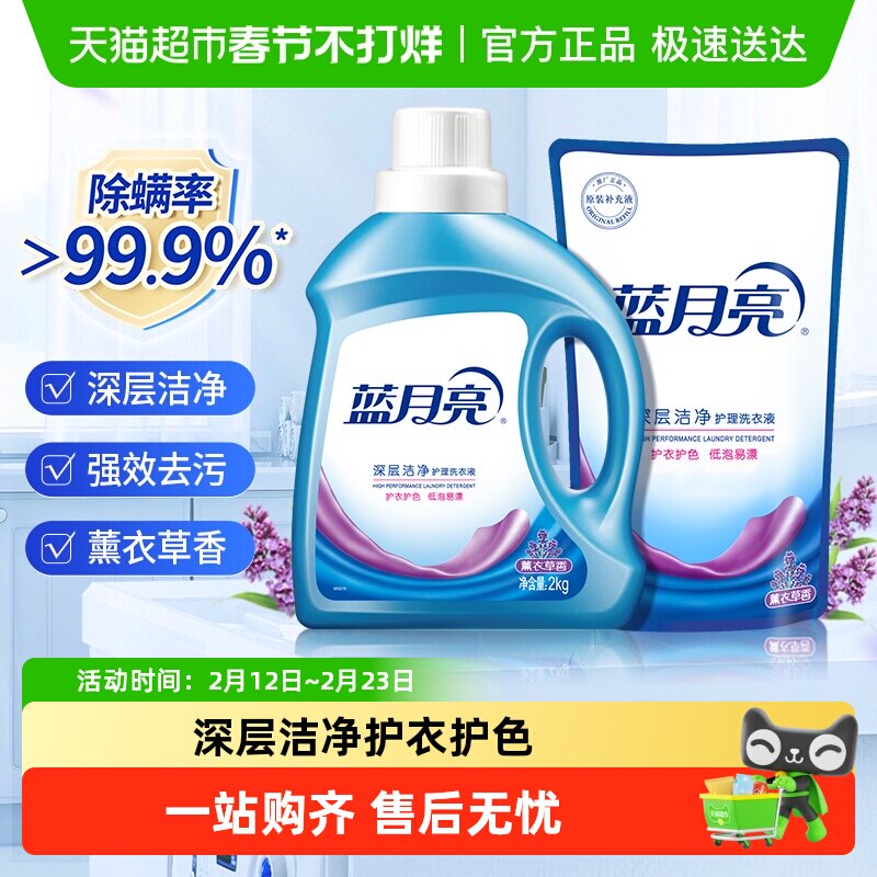 洗护清洁剂/卫生巾/纸/香薰 蓝月亮洗衣液深层洁净薰衣草香6斤留香家用宿舍瓶袋组合官方正品