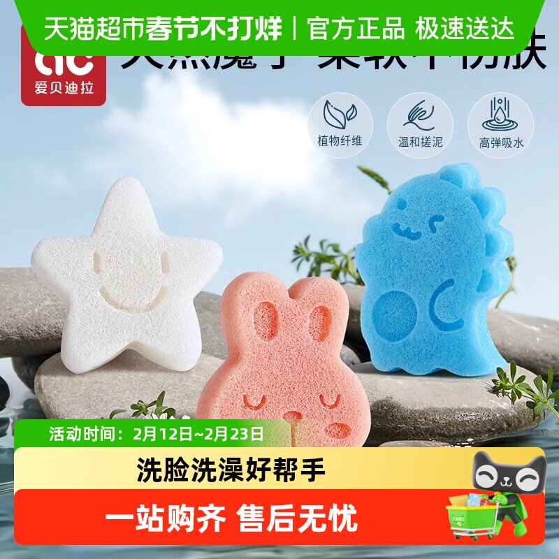婴童用品 包邮】爱贝迪拉婴儿洗澡海绵魔芋扑扑新生儿搓澡棉沐浴用品洗头刷