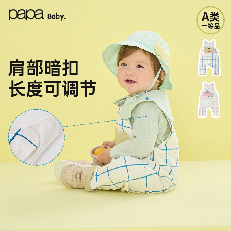 童装/婴儿装/亲子装 糯米棉papa爬爬春婴儿背带裤连体衣男女宝宝背心爬爬服外出夏裤子