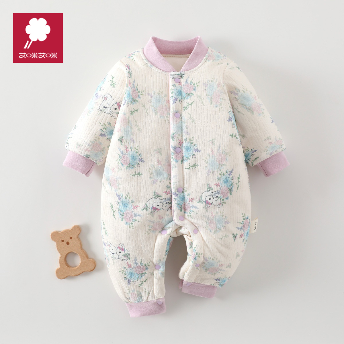 婴童用品 新生儿外穿爬服宝宝加厚棉服婴幼儿卡通夹棉150克加厚连体衣秋冬