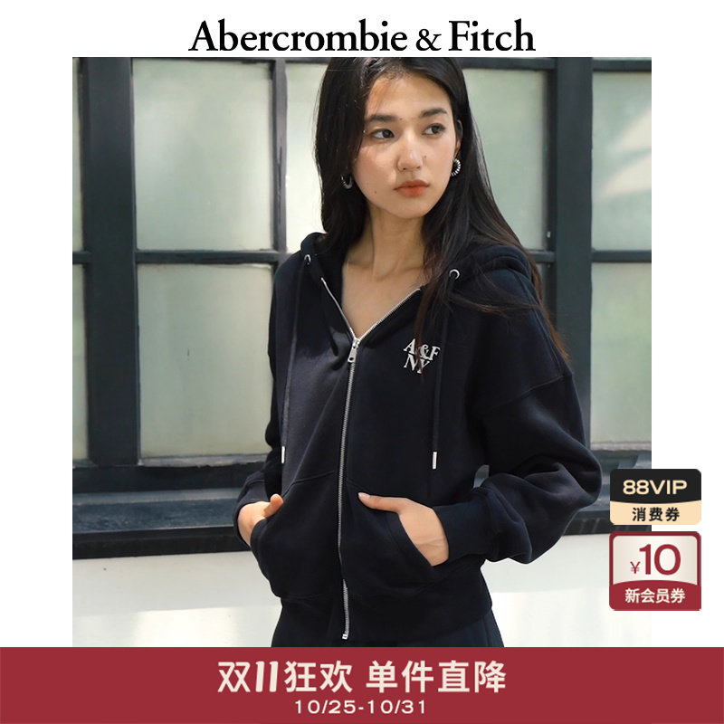 女装/女士精品 AF女装25秋冬新款美式抓绒字母LOGO拉链开衫连帽卫衣152-5249