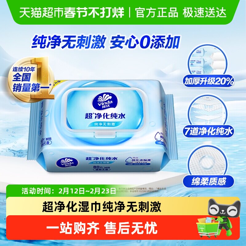 洗护清洁剂/卫生巾/纸/香薰 维达RO纯水湿巾80片1包婴儿可用抽取式湿纸巾