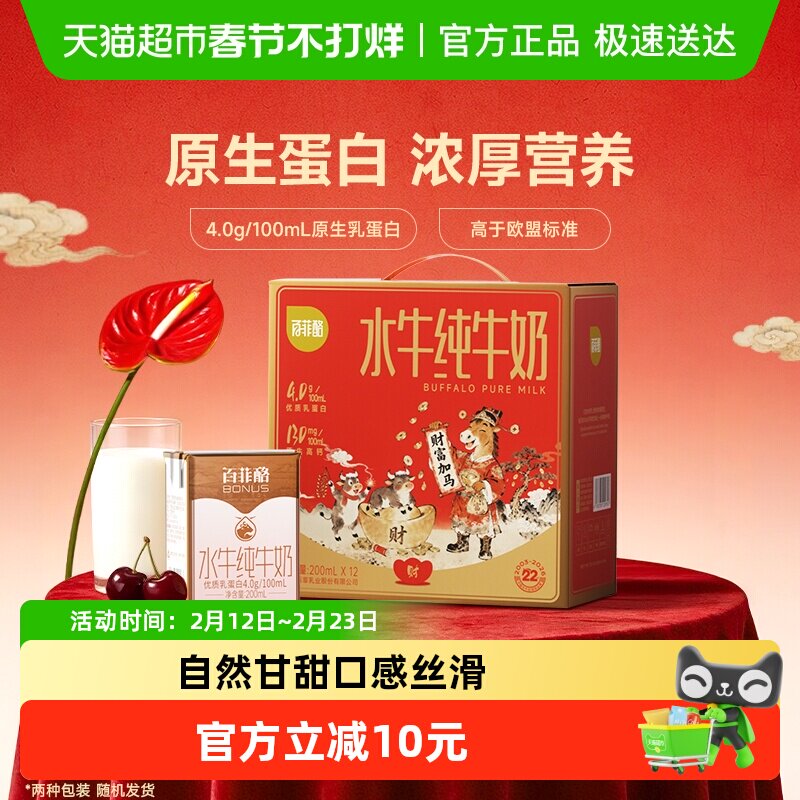 咖啡/麦片/冲饮 【包装随机】百菲酪水牛奶4.0g蛋白200ml*12盒/箱儿童营养牛奶