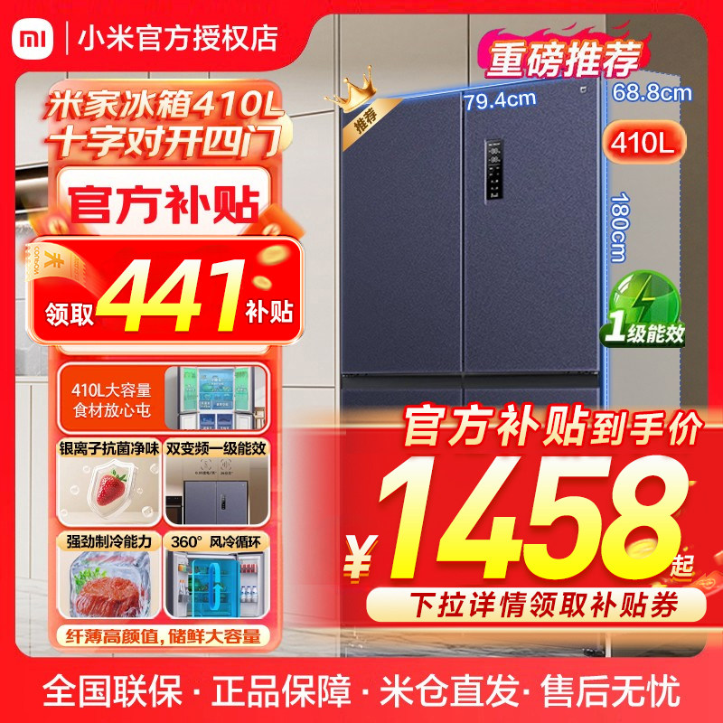 大家电 小米米家410Lplus十字四门风冷无霜净味除菌一级智能变频家用冰箱