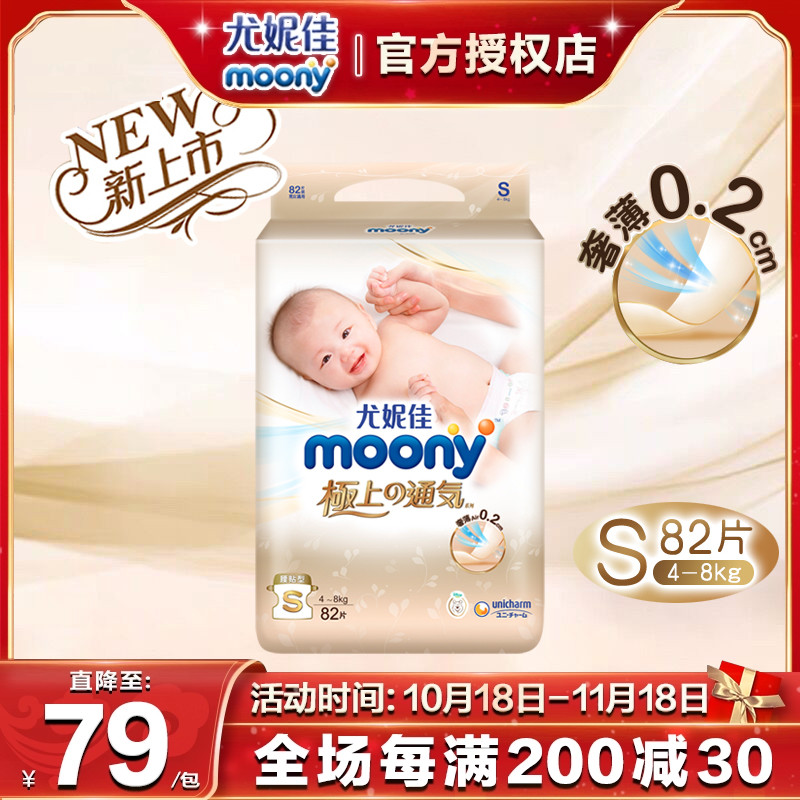 婴童尿裤 日本尤妮佳moony极上通气超薄透气婴儿纸尿裤S82片尿不湿温和亲肤