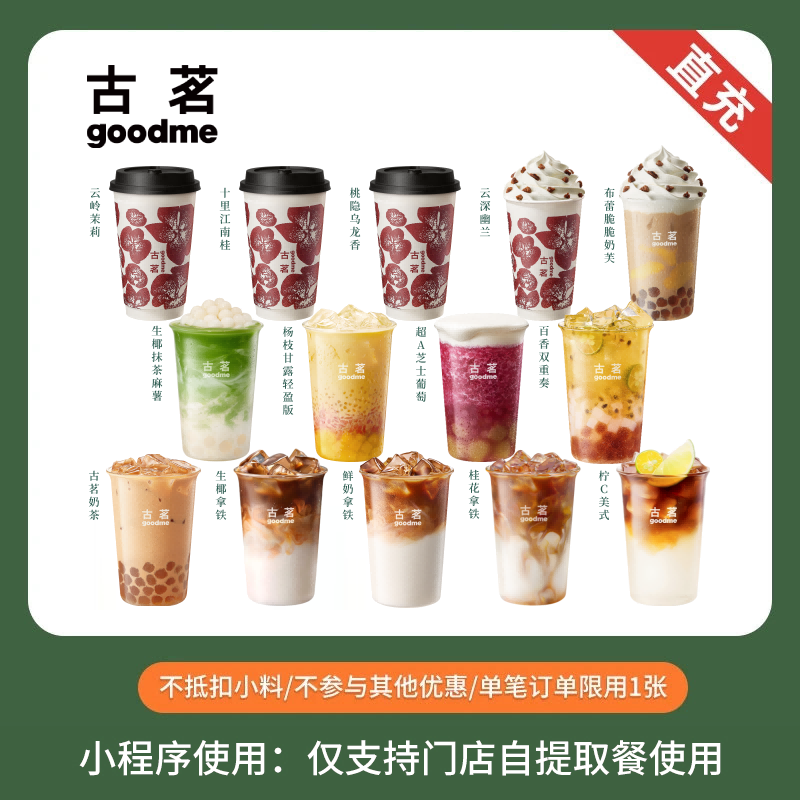 餐饮美食卡券 古茗 人气奶茶咖啡任选 奶茶团购优惠券 直充到小程序自提使用