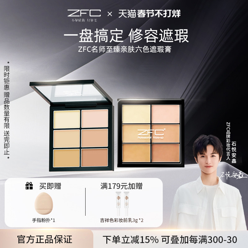 彩妆/香水/美妆工具 ZFC名师至臻亲肤六色遮瑕膏高光修容盘粉底膏遮盖脸部斑点黑眼圈