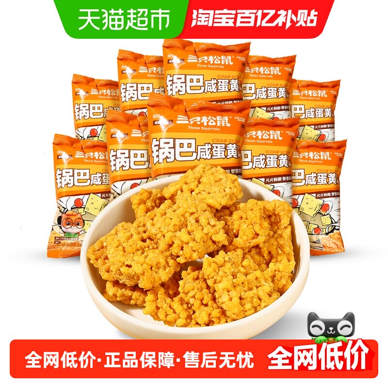 零食/坚果/特产 三只松鼠膨化糯米锅巴/咸蛋黄味网红办公室宅家追剧小零食