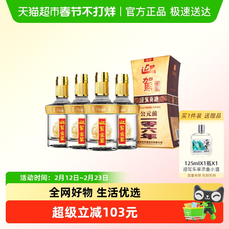 酒类 迎驾贡酒金星浓香型白酒42度520ml*4瓶整箱装
