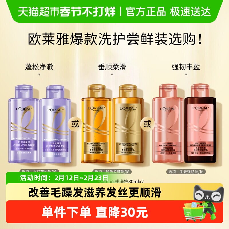 美发护发/假发 欧莱雅大金瓶玻尿酸生姜强韧洗发露蓬松控油柔顺顺滑干枯发防断发