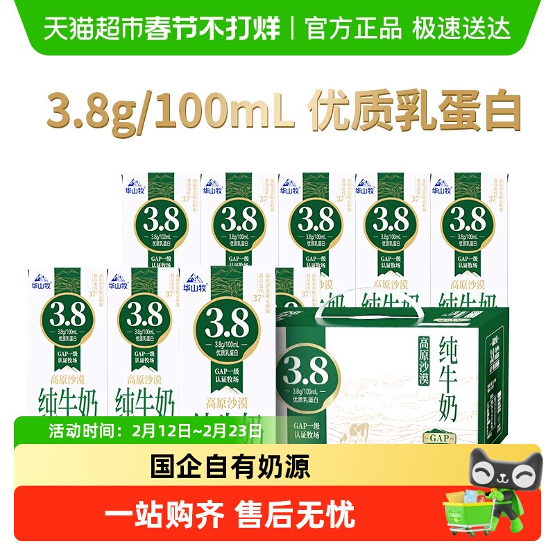 咖啡/麦片/冲饮 华山牧高原沙漠3.8g蛋白纯牛奶高钙牛奶整箱200g*10盒营养早餐奶