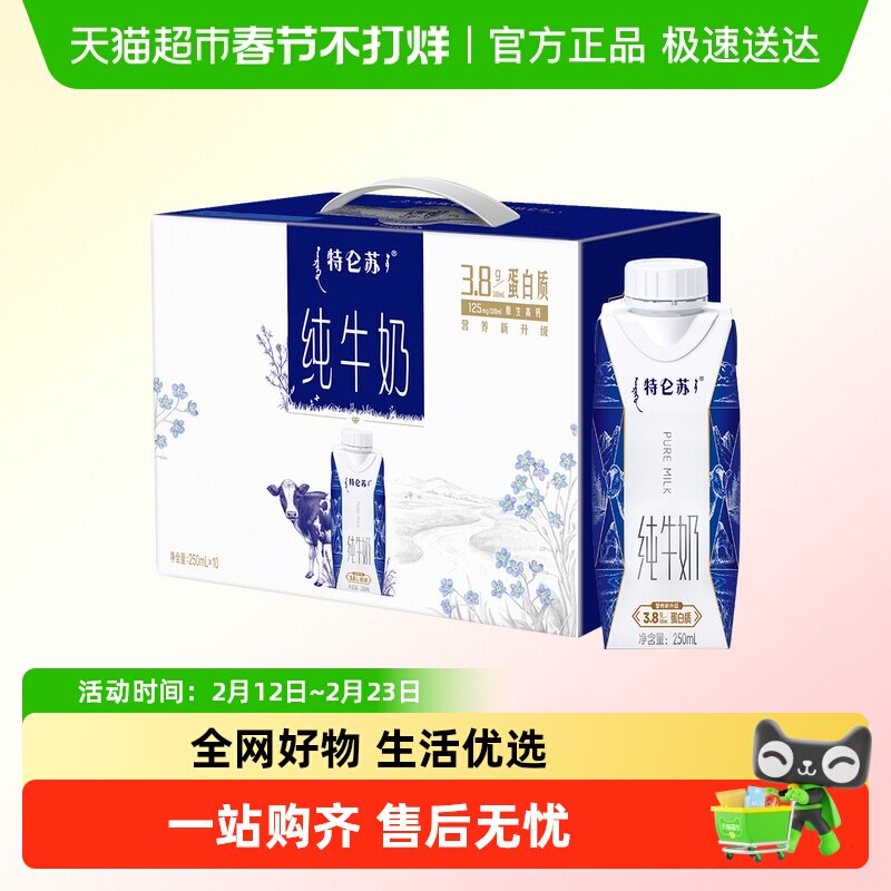 咖啡/麦片/冲饮 【最早日期10月产】蒙牛特仑苏纯牛奶梦幻盖250ml*10包