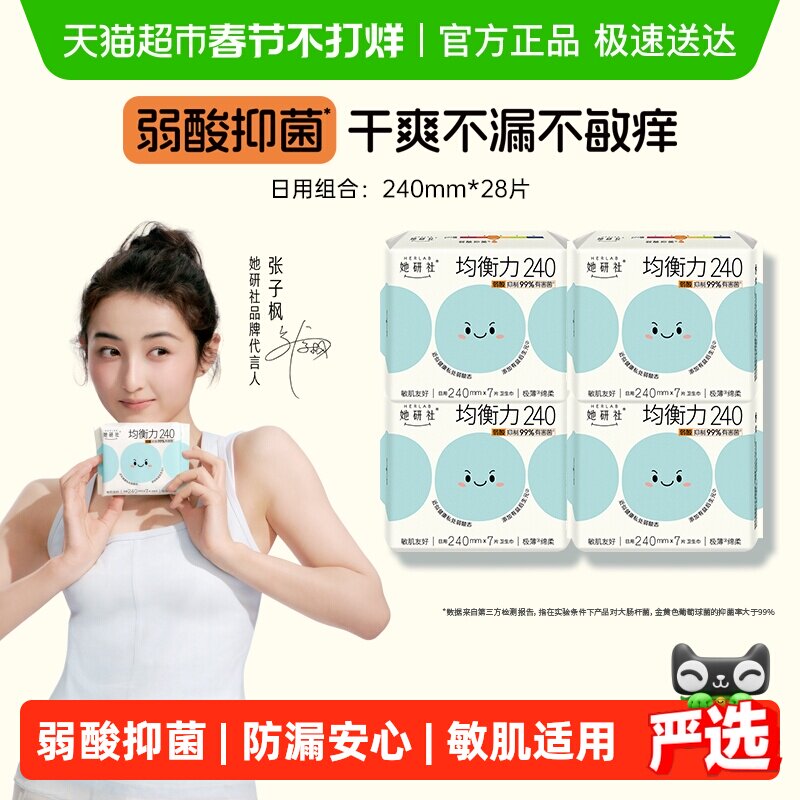洗护清洁剂/卫生巾/纸/香薰 她研社卫生巾姨妈巾均衡力弱酸抑菌亲肤超薄透气日用240mm