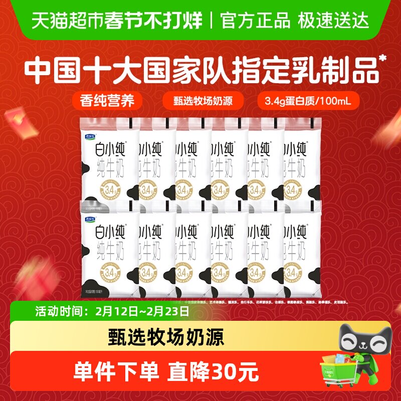 咖啡/麦片/冲饮 【单件包邮】君乐宝白小纯纯牛奶180ml*12袋散装非整箱营养纯牛奶