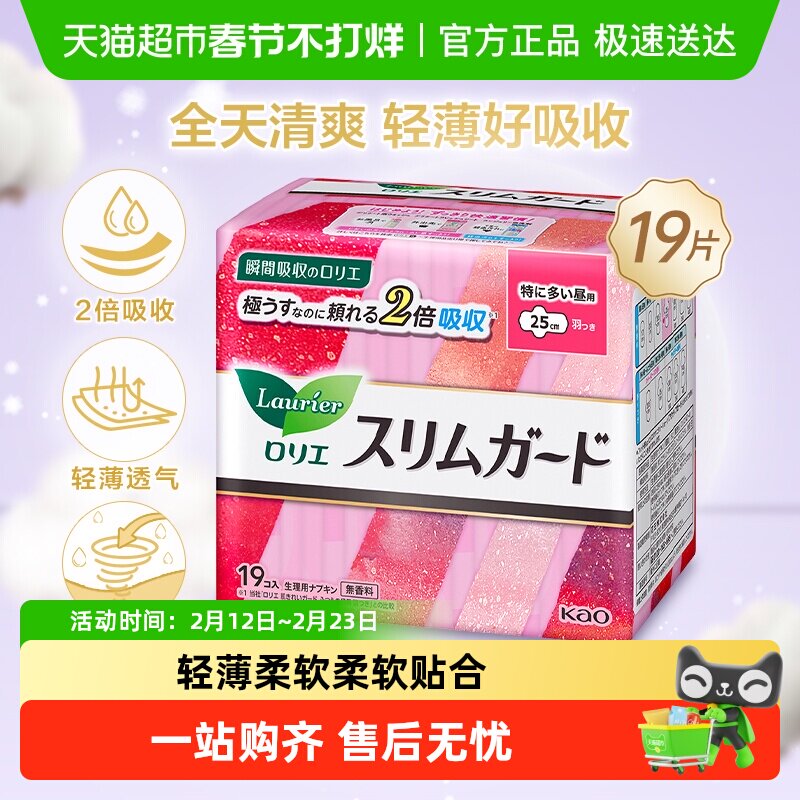 洗护清洁剂/卫生巾/纸/香薰 包邮日本进口花王乐而雅零触感卫生巾25cm*19片日用防侧漏姨妈巾