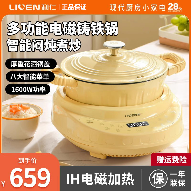 厨房电器 利仁电热火锅珐琅锅电磁锅煲汤家用焖炖锅多功能炒锅平底锅电磁炉