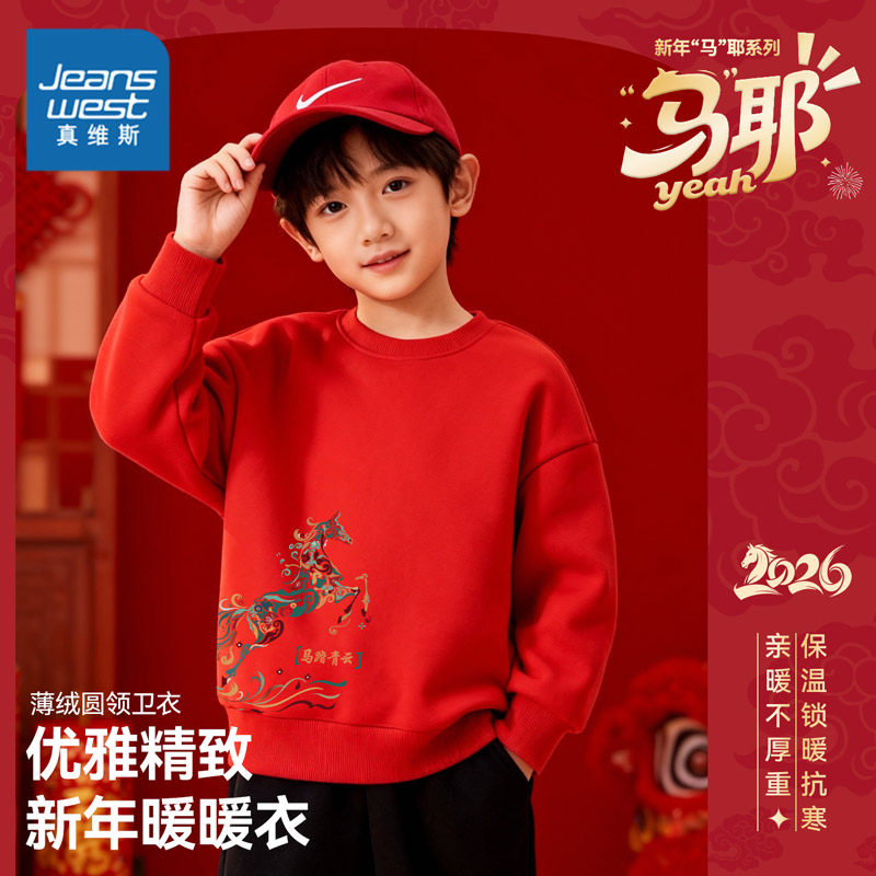 童装/婴儿装/亲子装 真维斯男童加绒裤子加厚2026新款男大童春季运动裤春秋儿童牛仔裤