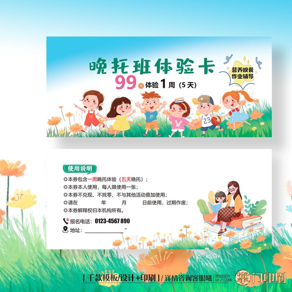 文具电教/文化用品/商务用品 教育小树辅导班托管班招生体验卡券代金券优惠券定制印刷