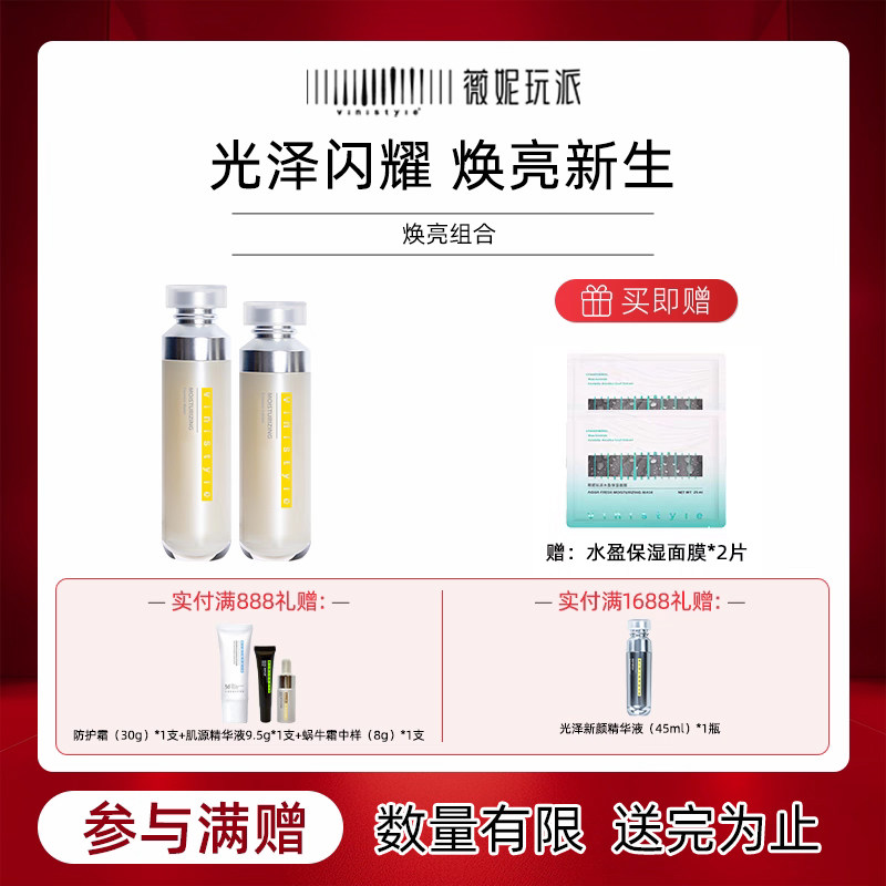 美容护肤/美体/精油 vinistyle薇妮化妆品光泽颜悦精粹化妆水精华乳液套装保湿透亮