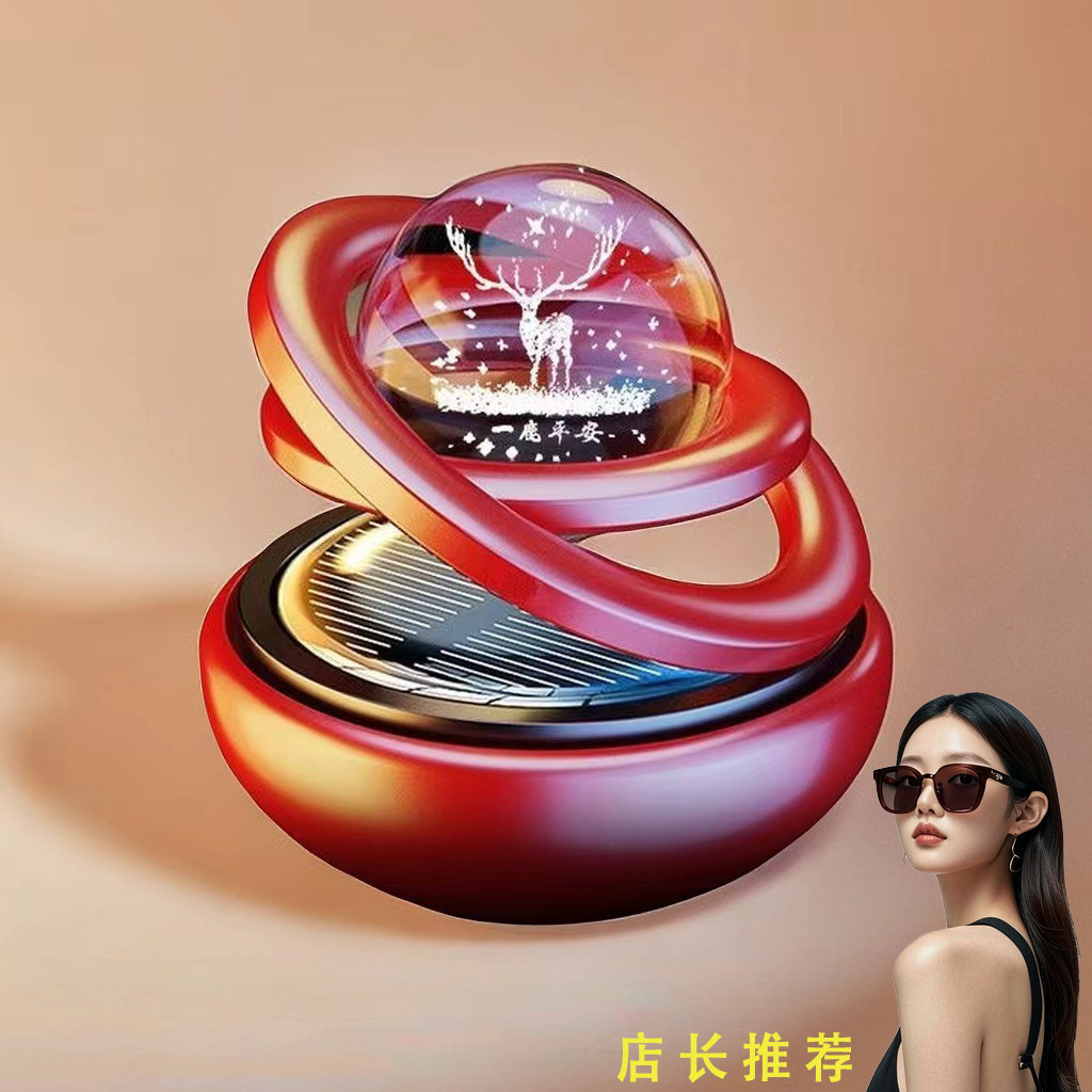 汽车用品/电子/清洗/改装 太阳能车载香水香薰水晶球双环悬浮旋转车内高端装饰男士女士摆件