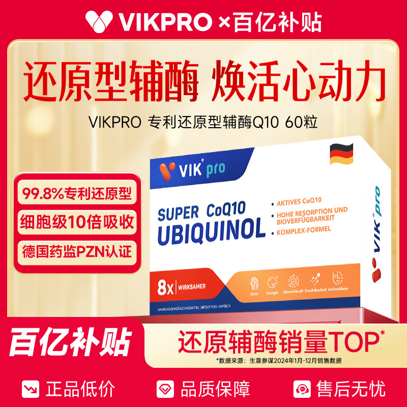 保健食品/膳食营养补充食品 【百亿补贴】德国VIKpro辅酶q10还原型专利泛醇coq10保护心脏素