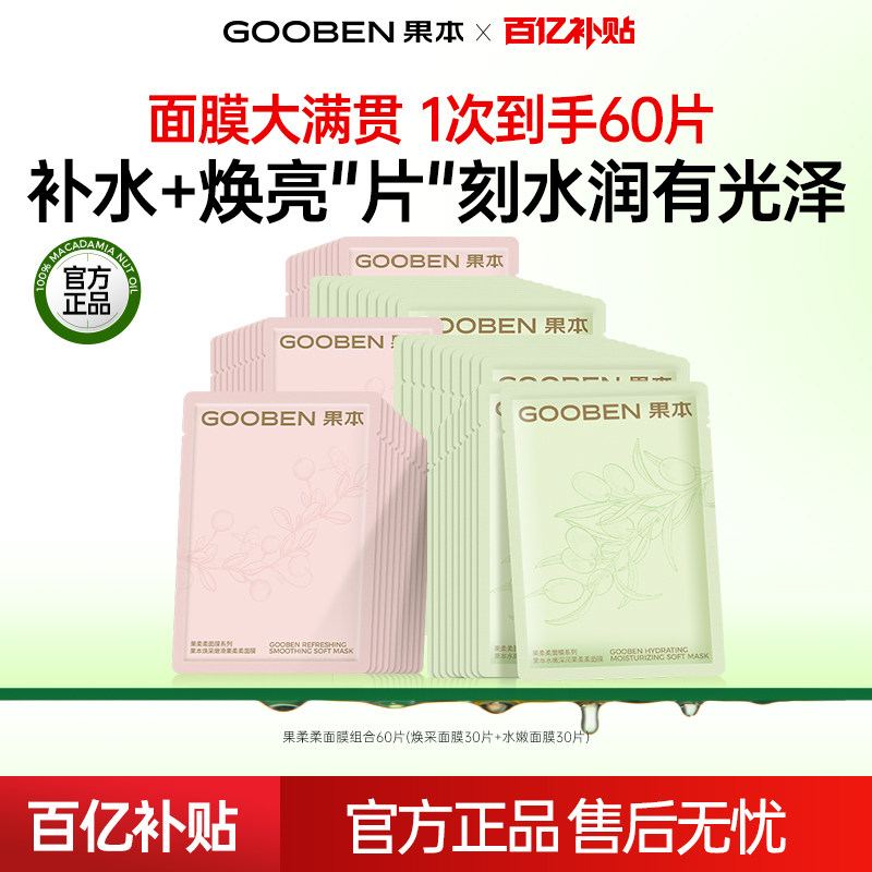 美容护肤/美体/精油 【百亿补贴】果本水润深润果柔柔面膜换季补水保湿贴片面膜