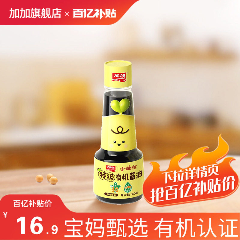粮油调味/速食/干货/烘焙 【百亿补贴】加加小加伙特级有机酱油160ml减盐30%黄豆酿造调味料