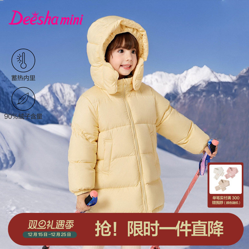 童装/婴儿装/亲子装 笛莎官方旗舰童装女童中长羽绒服秋冬季新款宝宝儿童蓄热防寒外套