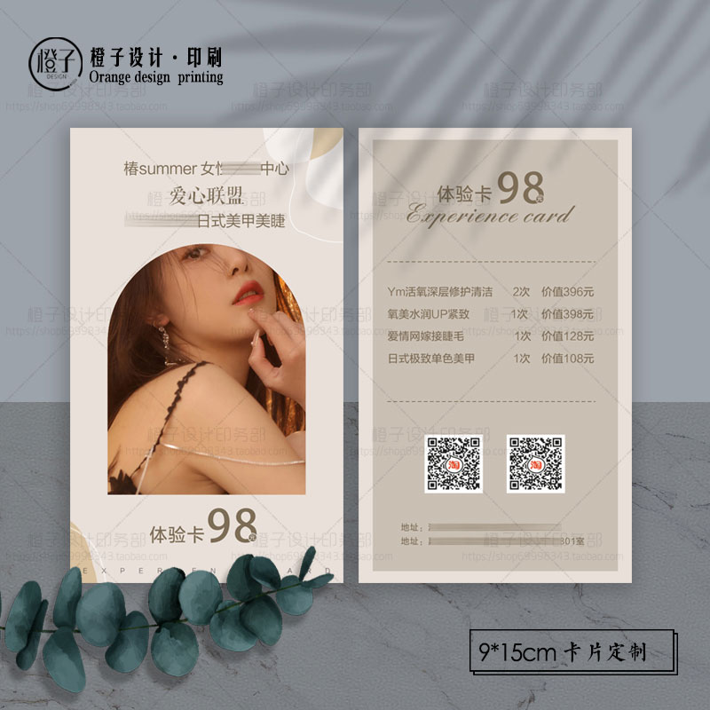 文具电教/文化用品/商务用品 网红美甲美睫皮肤管理体验券开业宣传优惠抵用卡宣传名片定制设计