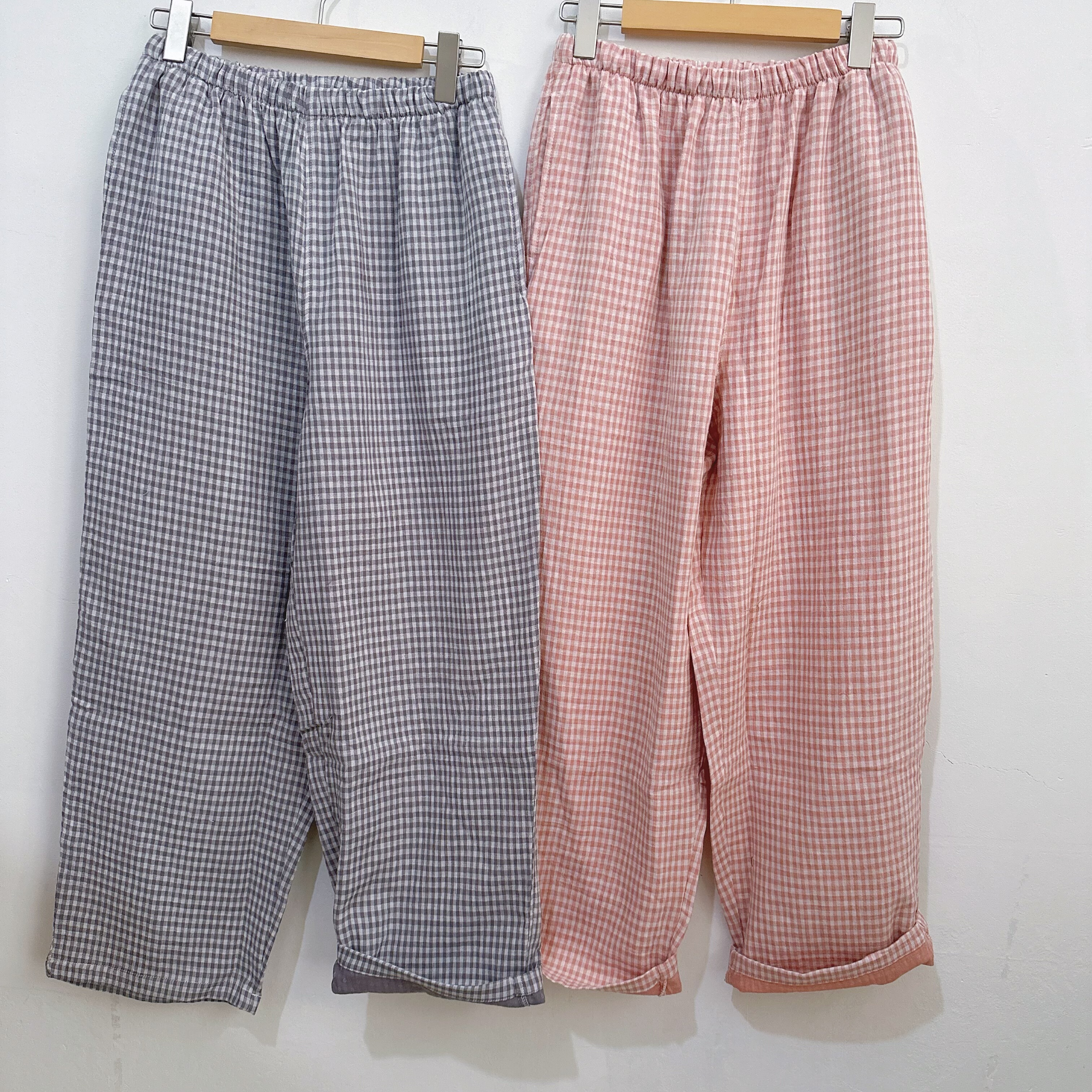 女士内衣/男士内衣/家居服 女款纯棉格子提花宽松双层纱布家居睡裤长裤