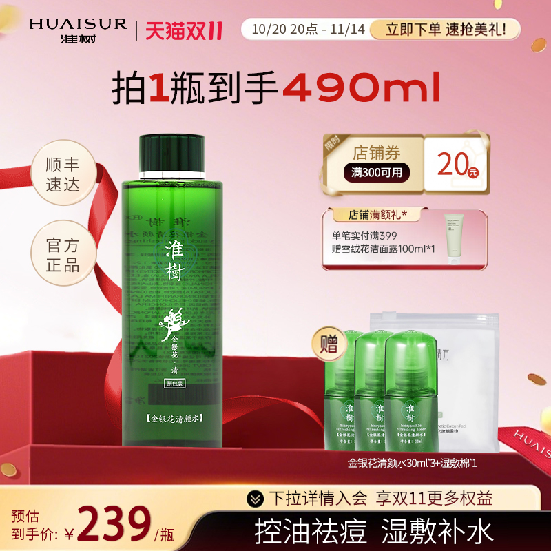 美容护肤/美体/精油 淮树金银花清颜水400ml祛痘控油爽肤水大容量化妆品官方旗舰正品