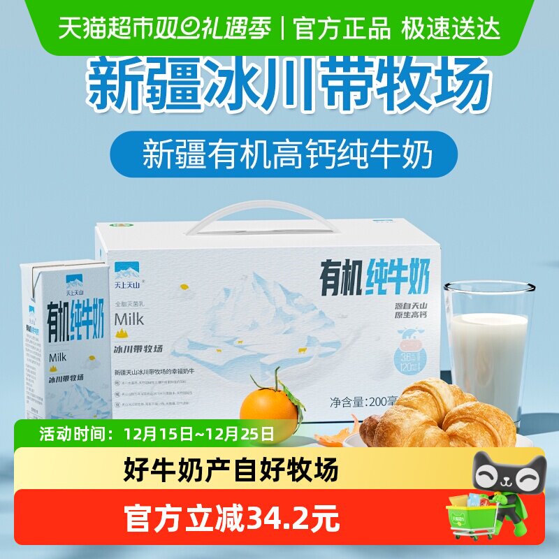 咖啡/麦片/冲饮 天上天山新疆有机纯牛奶学生三重有机奶