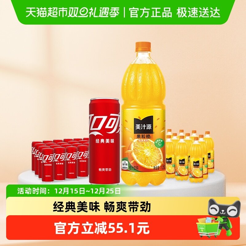 咖啡/麦片/冲饮 可口可乐含汽饮料330ml*24罐+果粒橙1.25L*12瓶多种包装随机发货